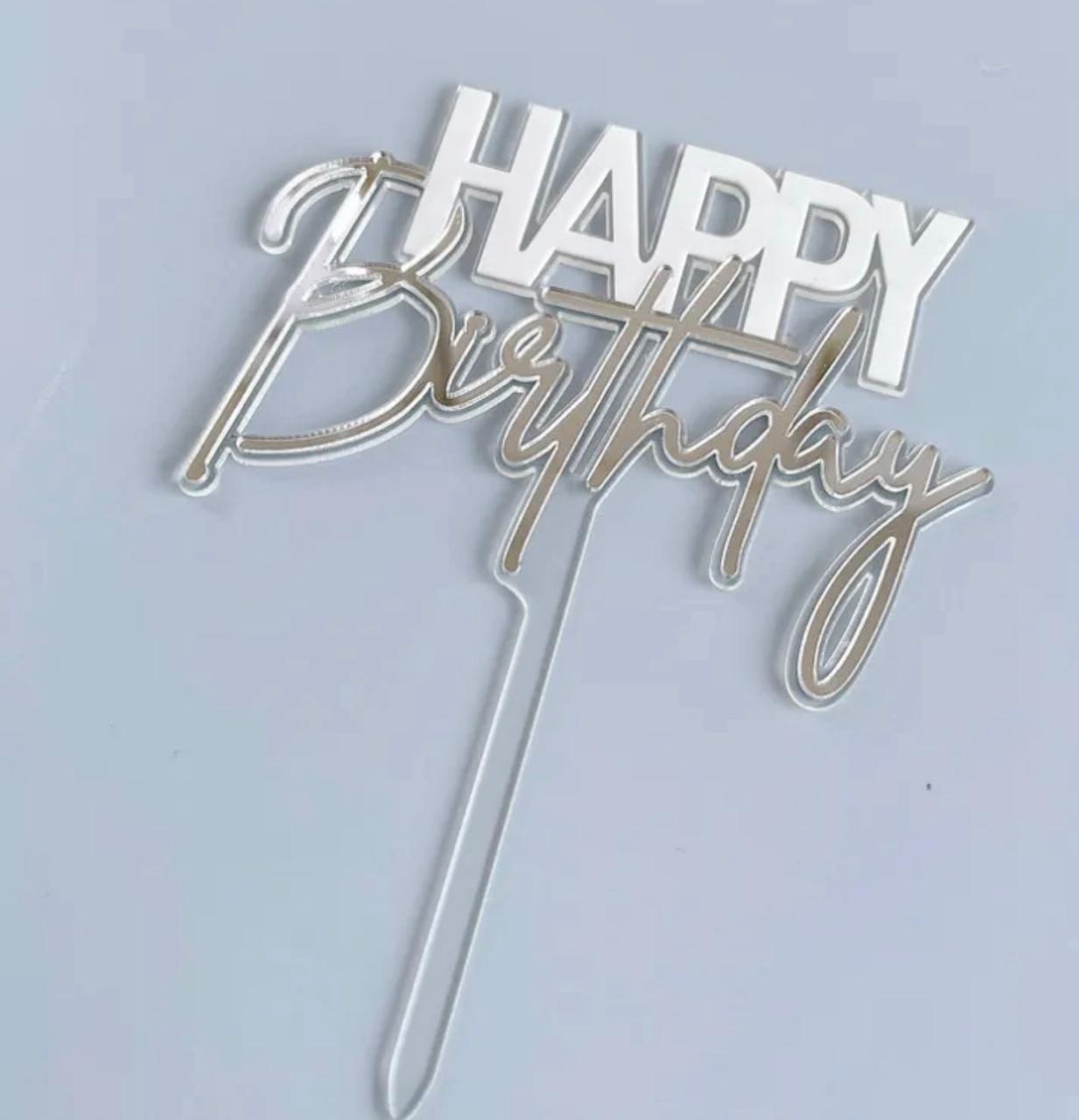 Happy Birthday - White & Silver - 14*13 cm / White & Silver